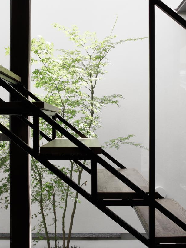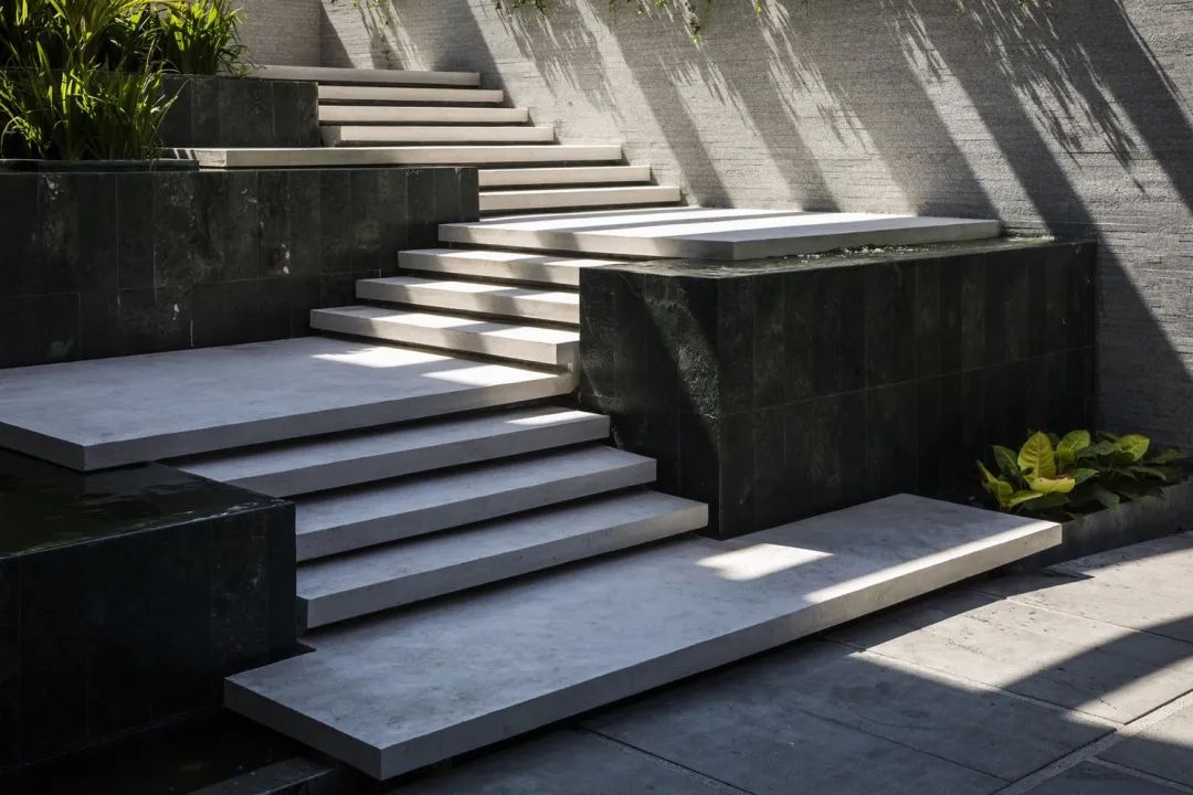 下沉式庭院利用坡差營造出一種曲徑通幽的意境美,相較于平層的設(shè)計(jì),多了各種造型和植被的分割,讓空間在視覺上變得更有層次感,空間的布局也橫生了不少樂趣。