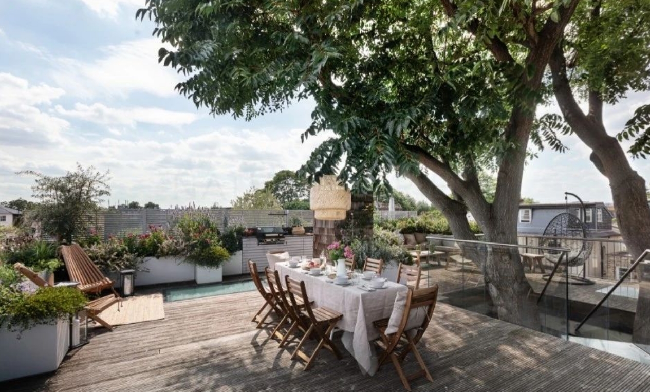 • 戶外餐吧:定制帶燒烤功能的島臺+伸縮雨棚,搭配長條木桌,雨天也能享受花園聚餐;