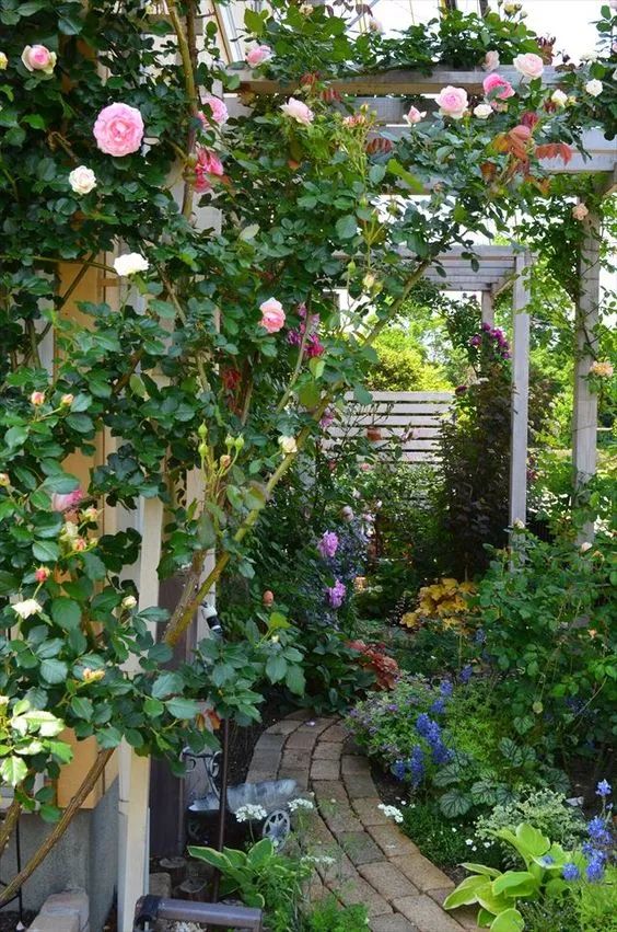 越是狹窄的地方,越是需要大型的硬件讓氣氛得到改善。如放置一個(gè)玫瑰拱門(mén),遮擋住丑陋的電線桿或是鄰居家晾曬的衣物架,而把數(shù)只拱門(mén)連接起來(lái),就可以提升整體環(huán)境的深邃感……利用花園硬件來(lái)創(chuàng)造出視覺(jué)魔法,進(jìn)一步提升小路的品質(zhì)。