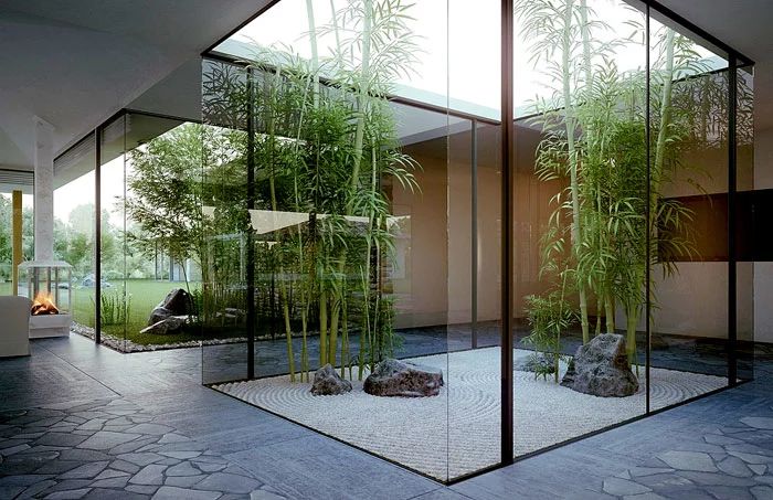 你不需要一個大型的戶外空間為家里添置一個巖石園。如下圖所示,在家里,用玻璃框起來的巖石園使得居住空間與自然融為一體。不妨觀察觀察沙子的形式,感受一下它是如何創造河流蜿蜒的錯覺。
