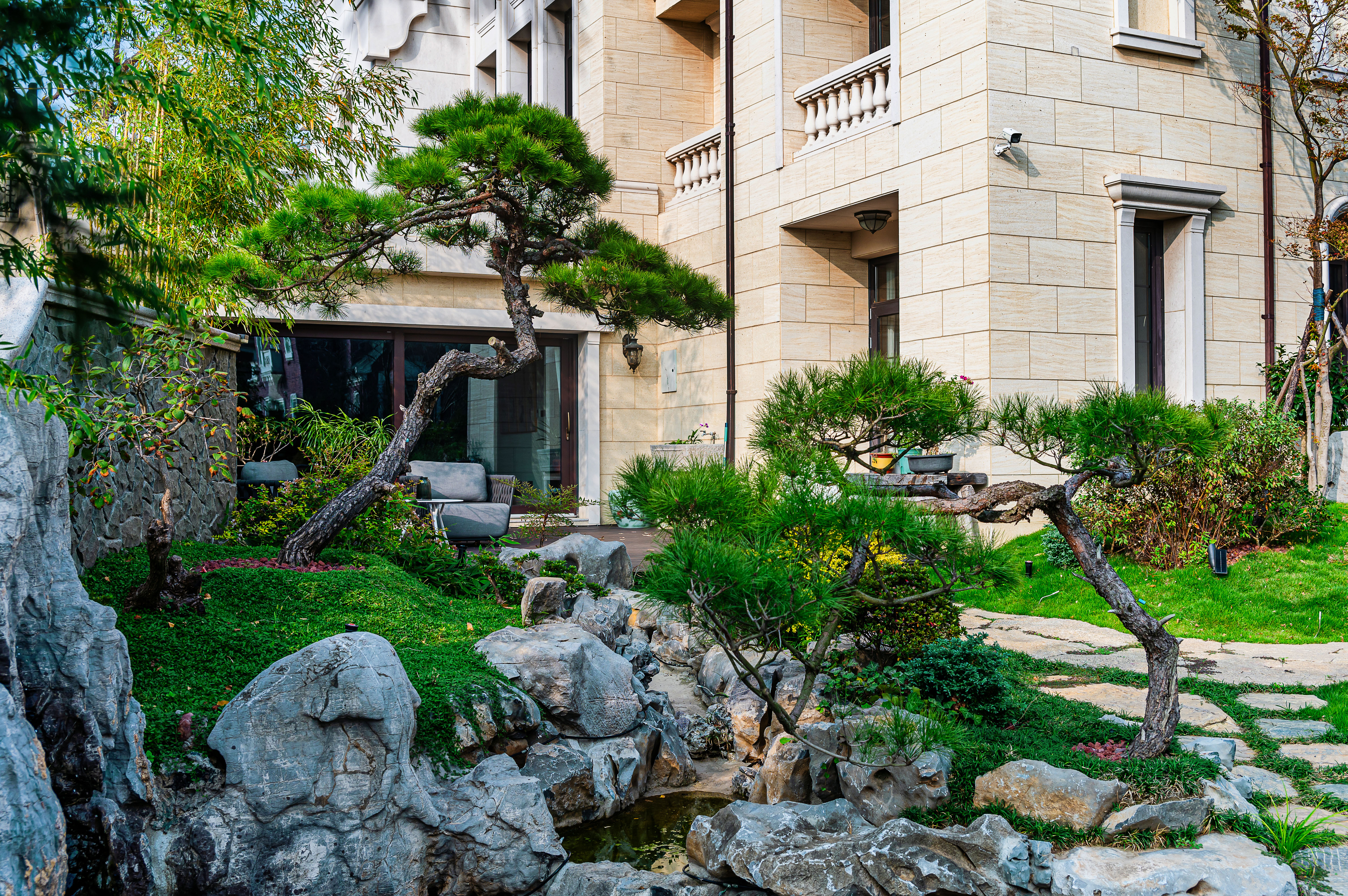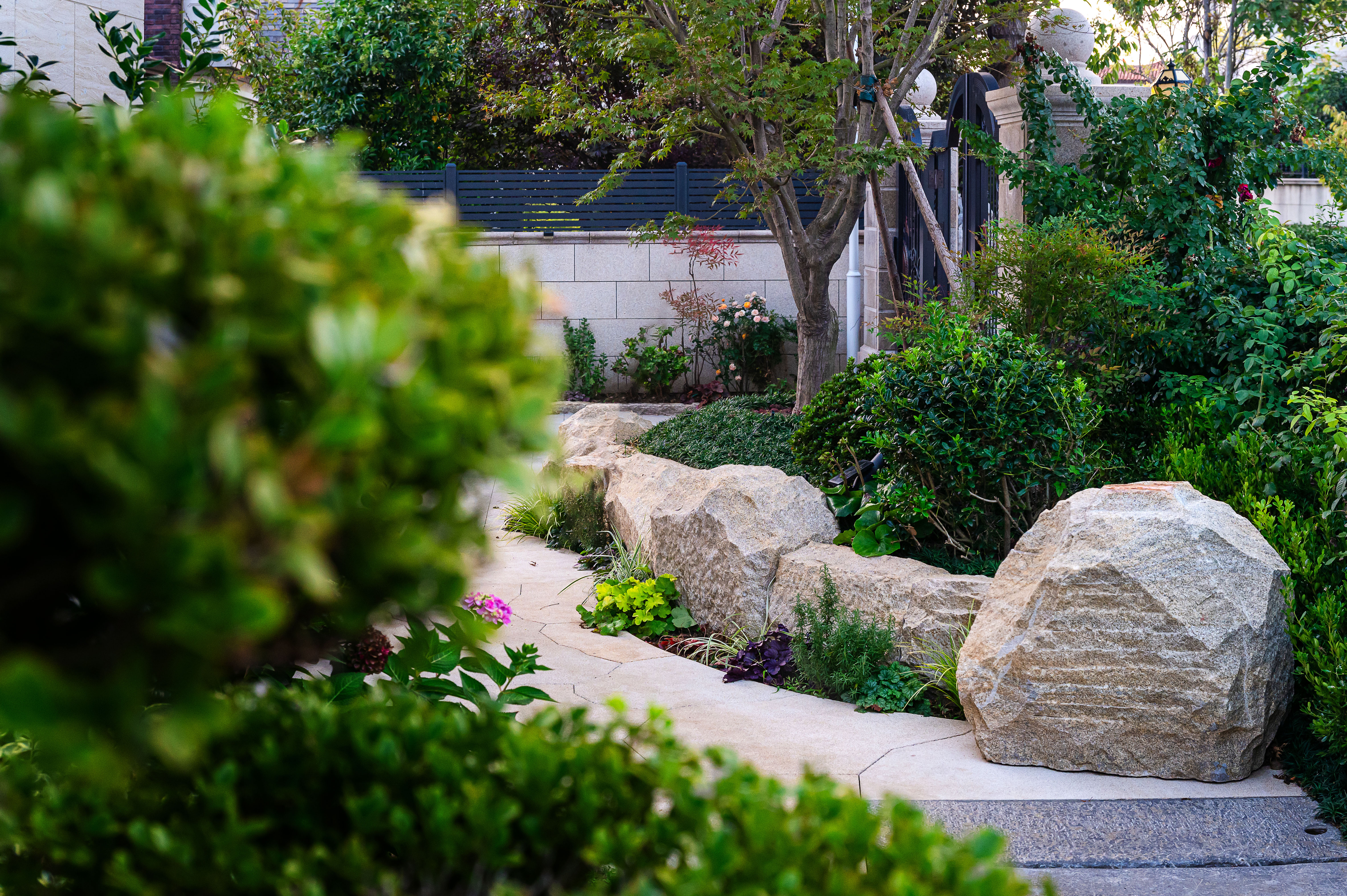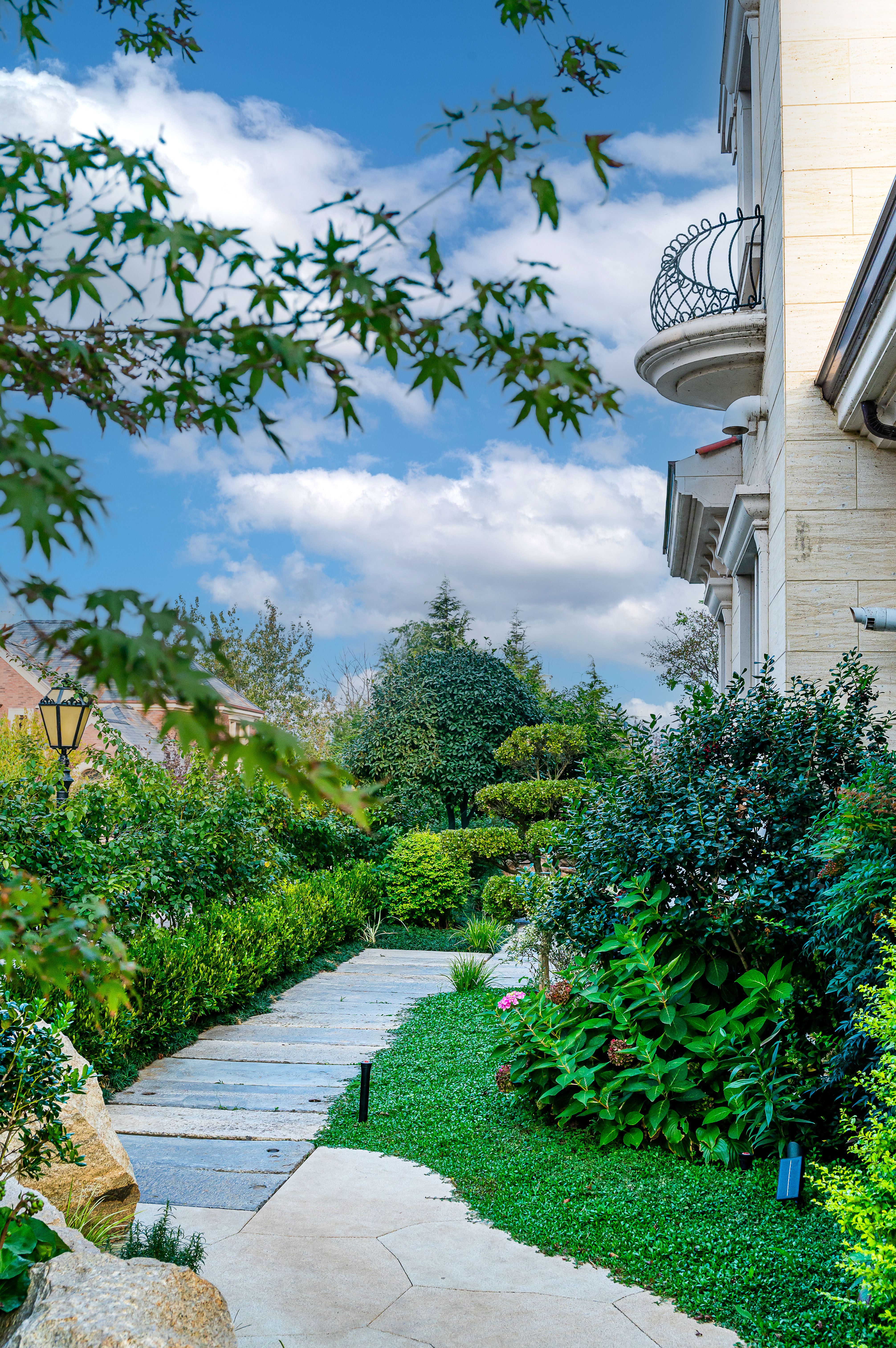 佳木芳草之間,沿著小徑漫步,仿佛成為了這個和諧的自然庭院的一部分,感受曲徑踱步之樂趣。在保留原有林木的基礎上,搭配喬木,灌木,與時花。隨著氣候變幻而綻放,四季芬芳。微風吹過,風鈴搖動,清脆悅耳,如音樂般美妙動人,讓人陶醉其中,流連忘返。在花園里享受美好的日常。