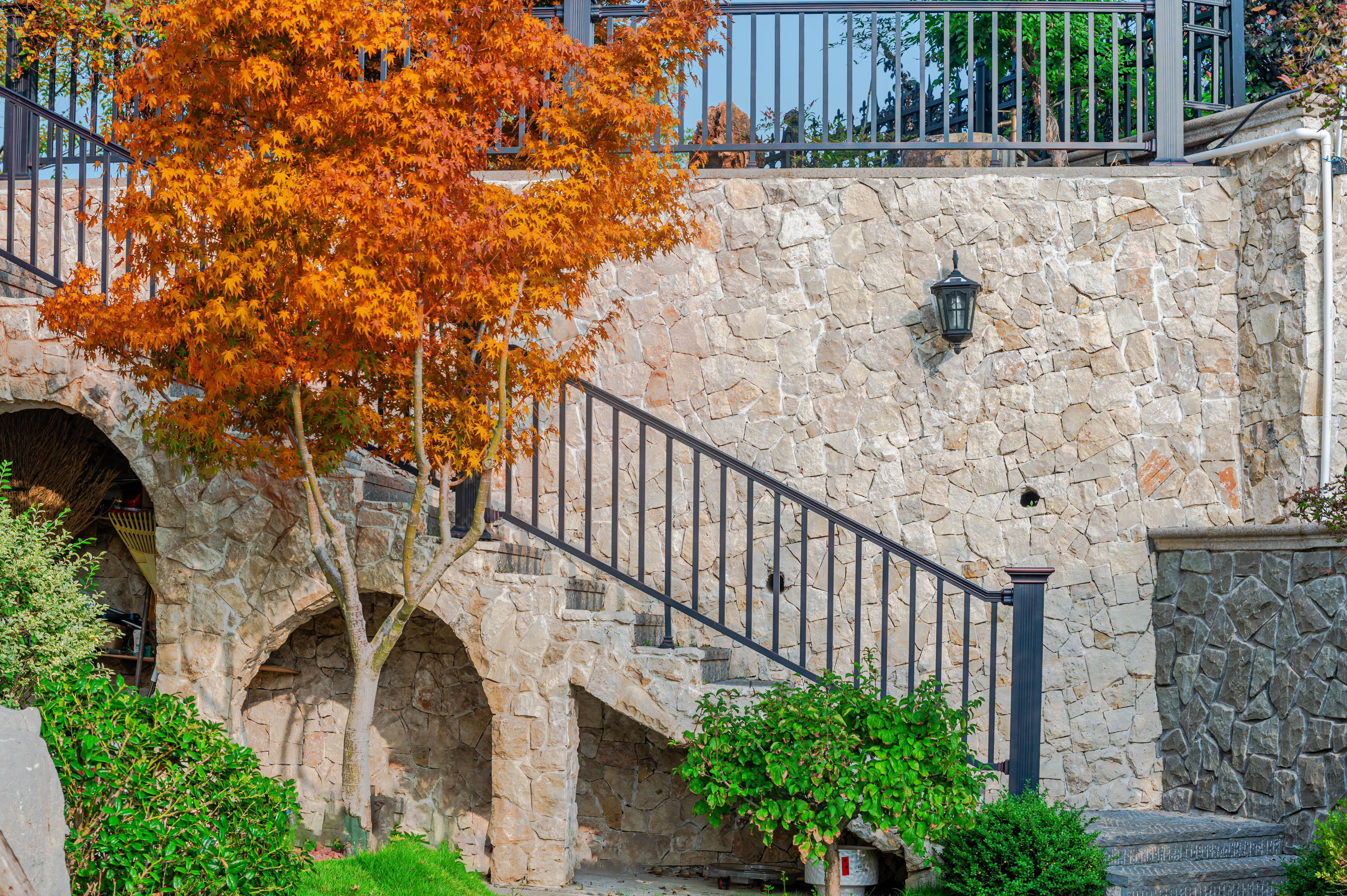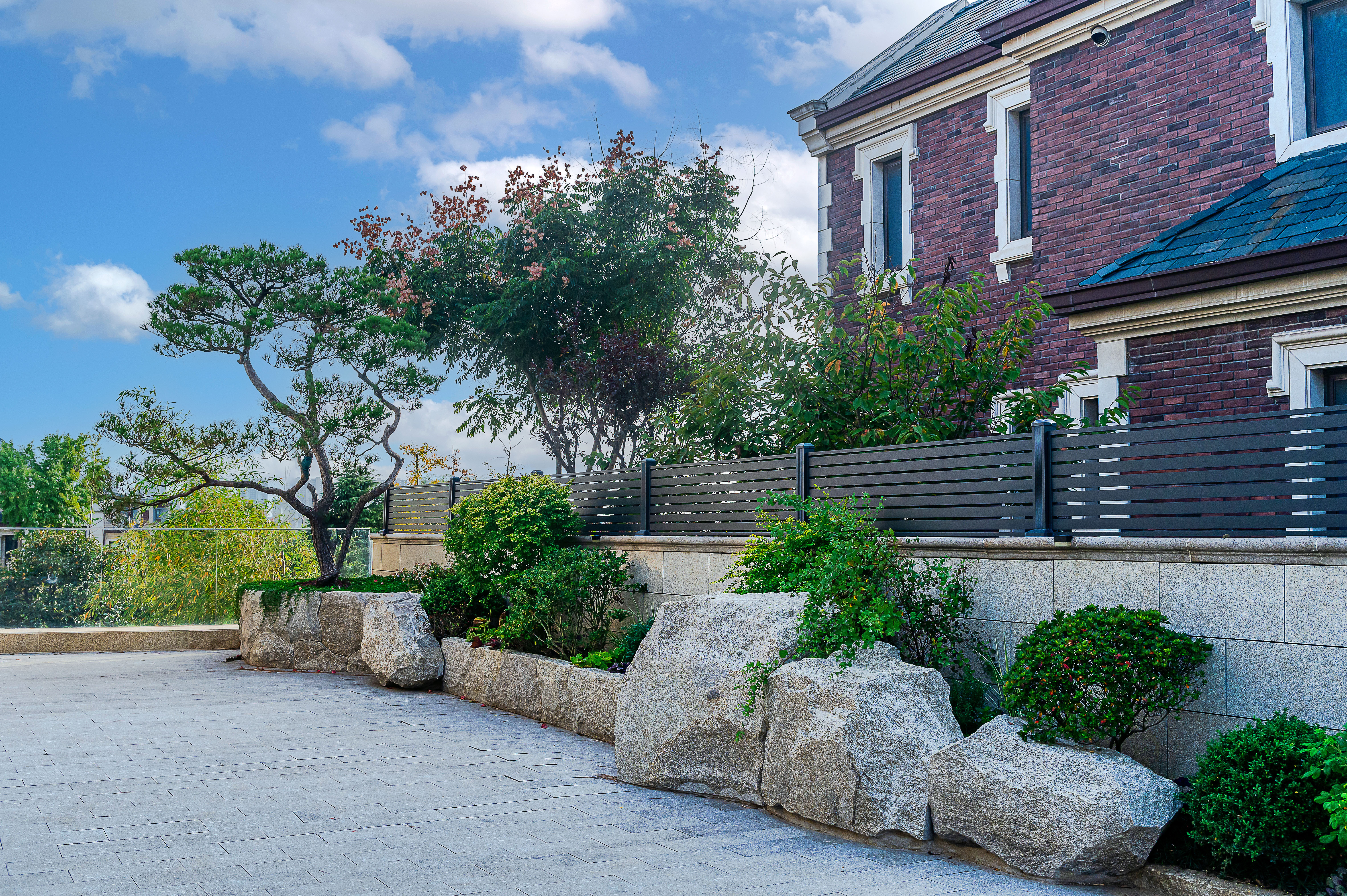 入口空間主要保留現有的鋪裝,方便日常的出入,搭配大氣精致的院門。靠近院墻增加了原石花壇,種植造型飄逸黑松和灌木,增加了入口的層次感,入口的轉角處利用景石搭配姿態優美的雞爪槭、南天竹等,豐富了季相變化。自然中透著些許莊嚴感,營造出富有層次、大氣浪漫的入口空間氛圍。