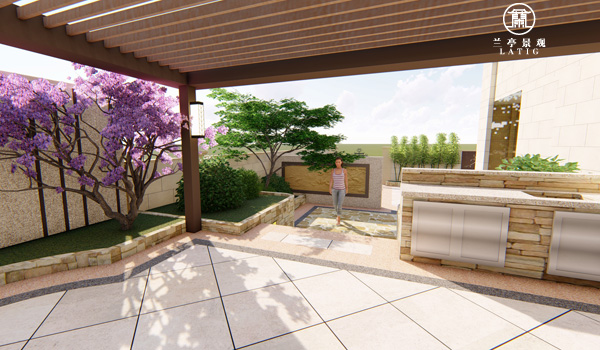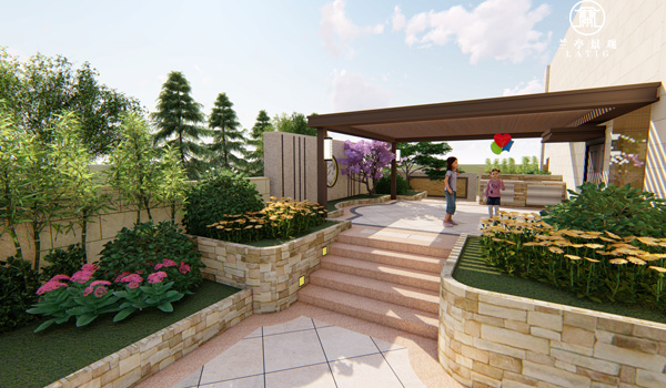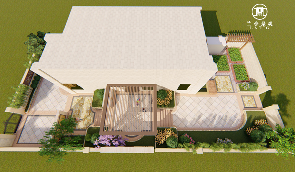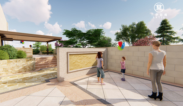 設計師說明:花園占地面積約為251平方米,整體風格為簡歐風,主要為于建筑的北側、東側與南側,花園北院主要以菜園為主,東院為主要活動休閑區,南院滿足交通及停留的功能,設計形式主要以大面積的鋪裝及花池為主,照壁景墻增強立體感的同時起到遮擋視線的作用,整體設計滿足了花園業主的功能需求,體現了業主干凈整潔,對花園的熱愛與執著。