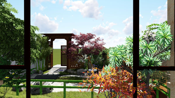 屬性:庭院效果圖 庭院面積:200㎡以下 庭院設計風格:日式禪意