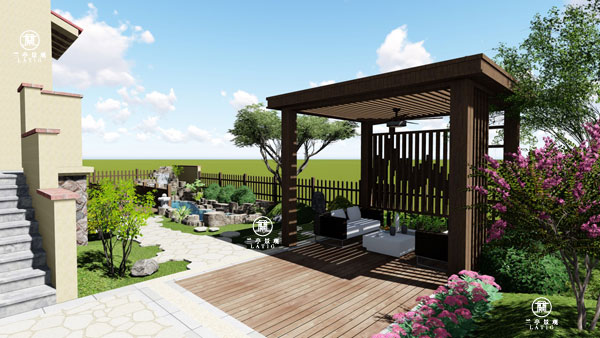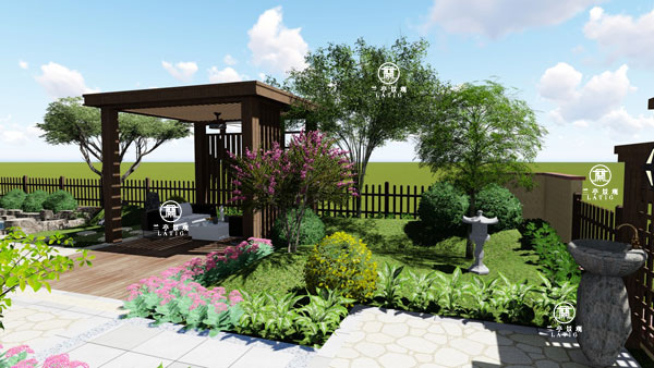 屬性:庭院效果圖 庭院面積:200㎡以下 庭院設計風格:美式田園