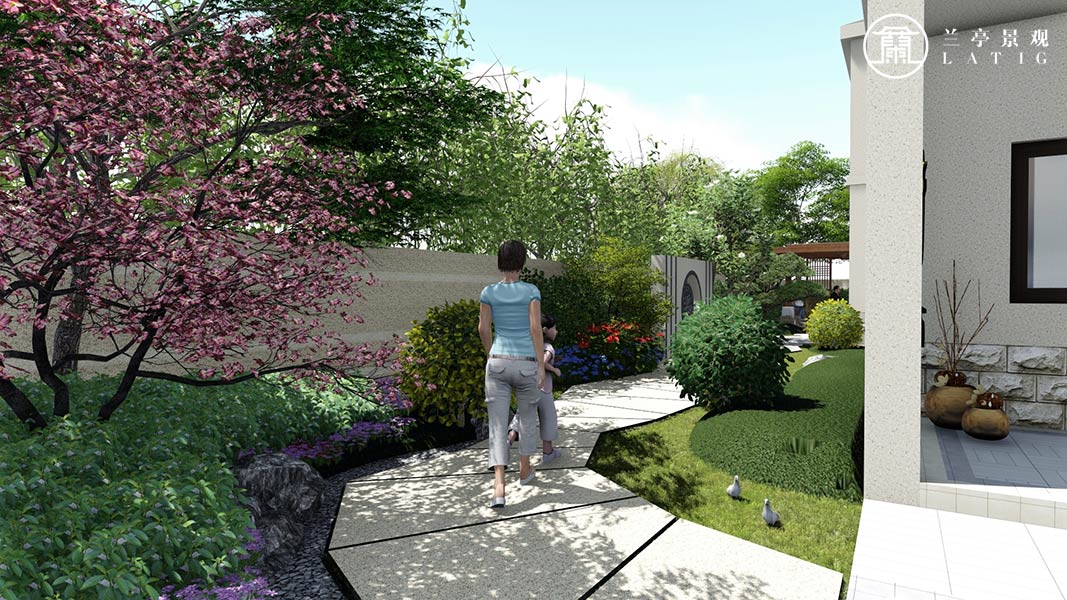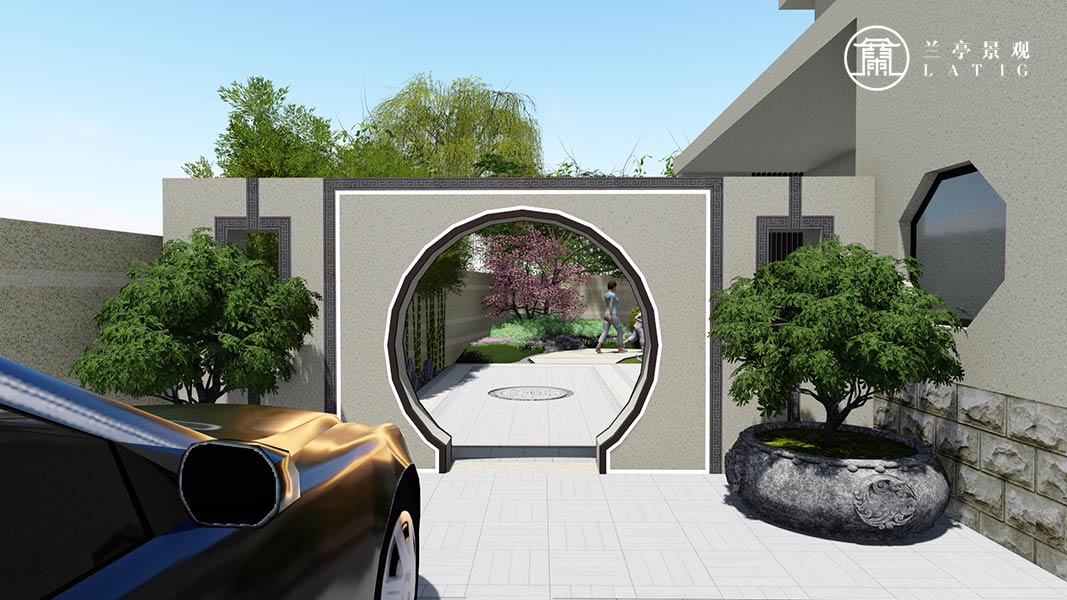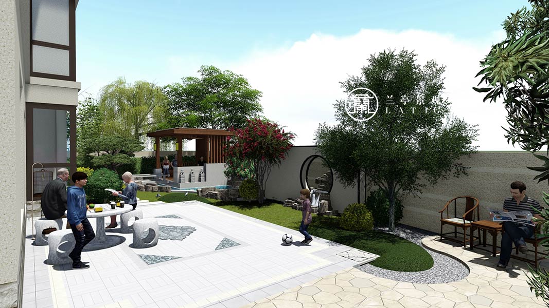 屬性:庭院效果圖 庭院面積:200㎡以下 庭院設計風格:新中式