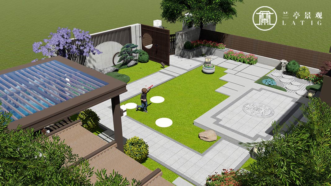 設計說明:方正的整個南院,開闊一覽無余,設計上,著重入戶的儀式感,花園的游園性,