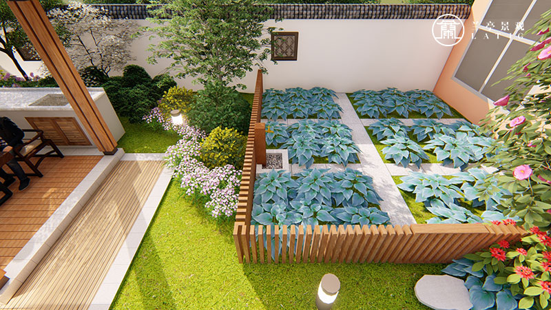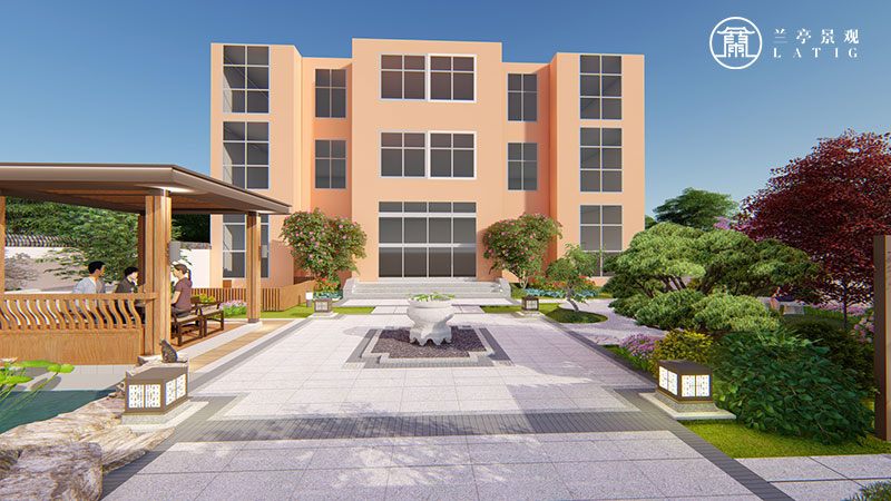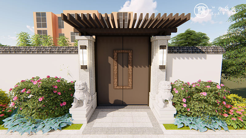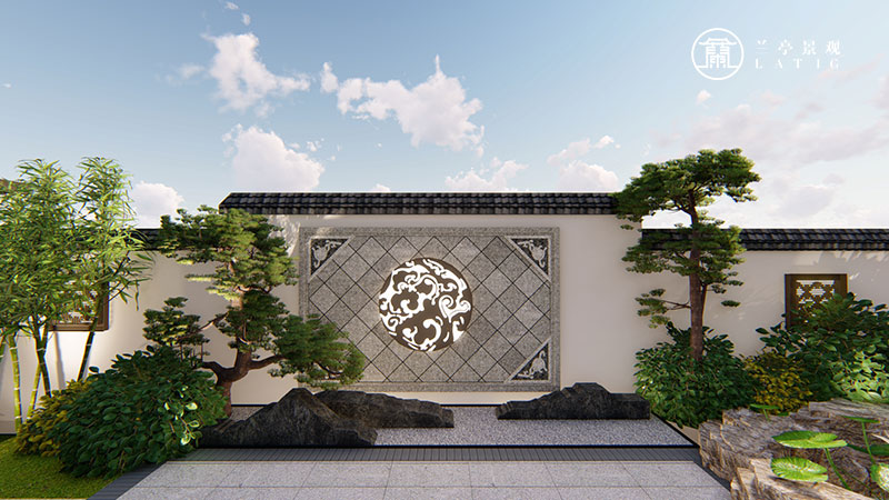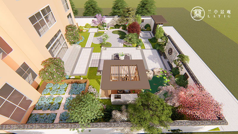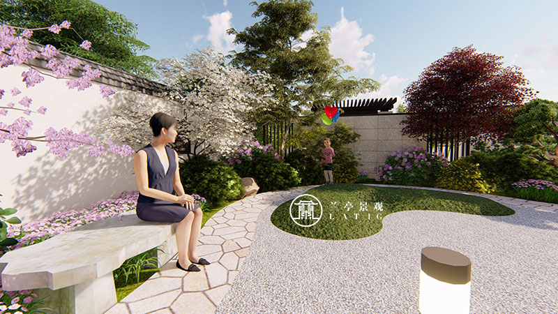 屬性:庭院效果圖 庭院面積:500-1000㎡ 庭院設計風格:新中式