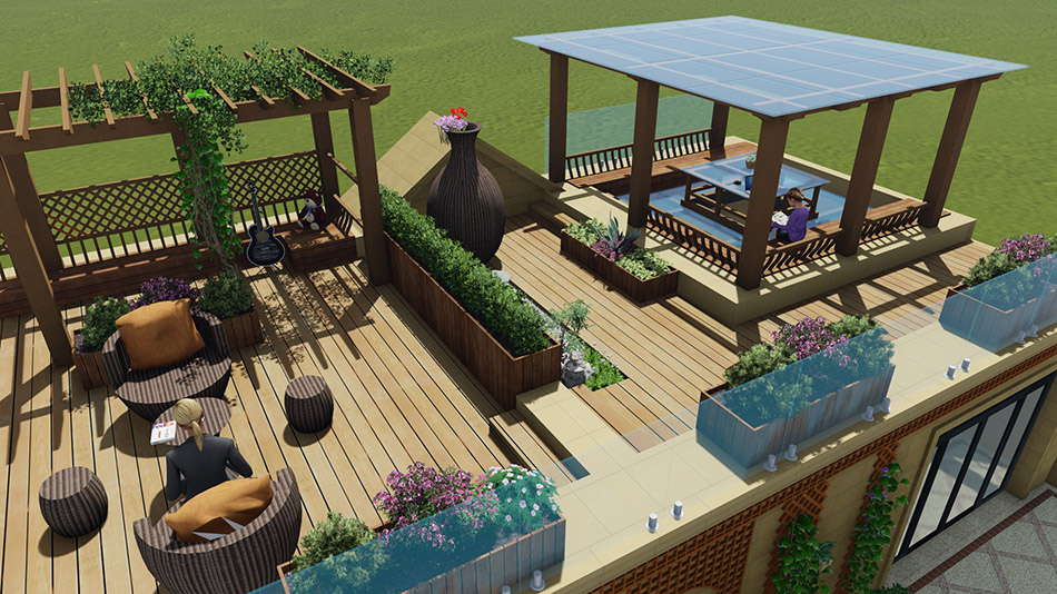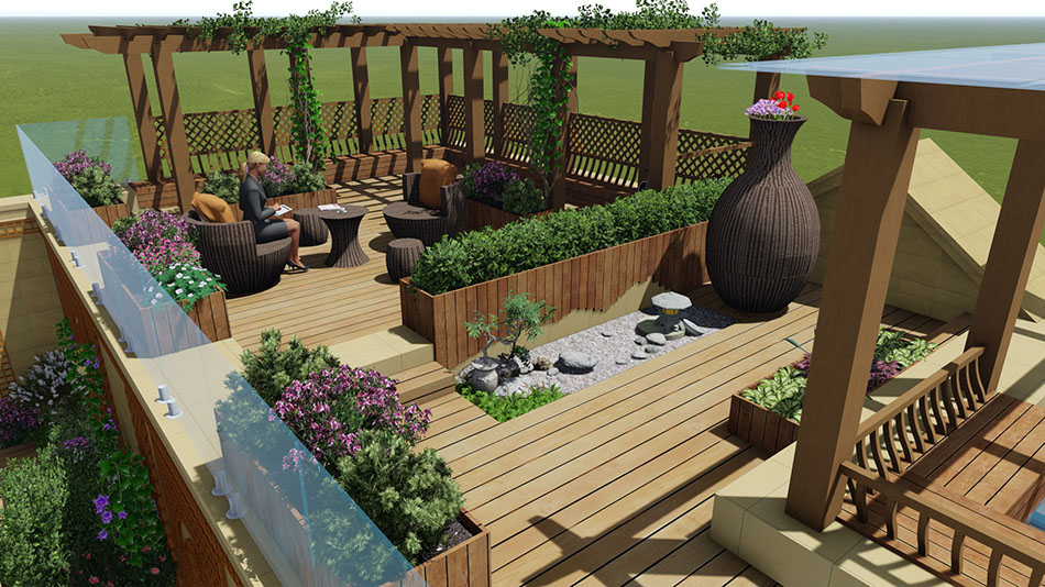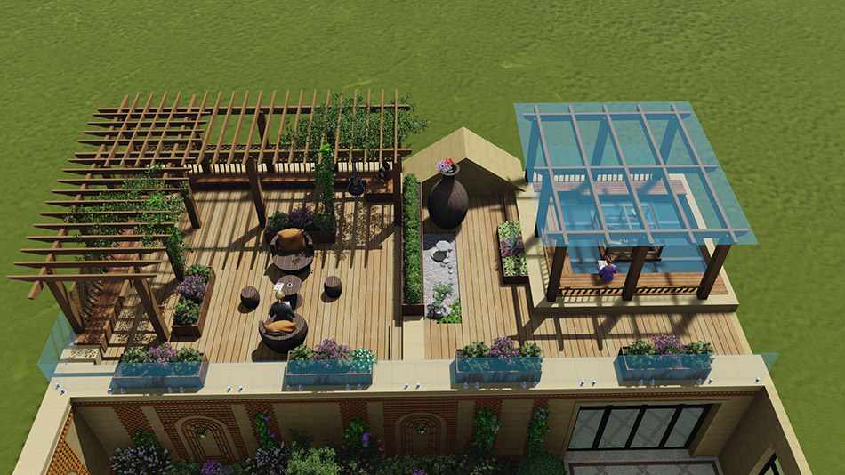 青島屋頂花園設(shè)計-綠城玫瑰園屋頂花園設(shè)計 屬性:庭院效果圖 庭院面積:500-1000㎡ 庭院設(shè)計風格:現(xiàn)代簡約 設(shè)計師: 董侃侃 瀏覽量:7024 發(fā)布時間:2016/12/21 13:21:53