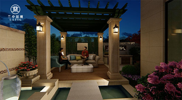 各個功能分區緊密聯系,結合綠化燈光設計布置,營造溫馨的氛圍烘托空間,讓園主和客人體驗花園的良好視覺感官。
