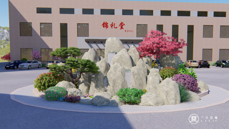 本案中,石是十分重要的造景素材,俗話說“園可無山,不可無石,石配樹而華,樹配石而堅”,設計師在進行酒店景觀設計時,也充分考慮酒店庭園空間的地形地貌,空間大小,意境需求,讓設計服從于整體環境,巧取石的臥與立,聚與散,靜與動,平與險,使酒店景觀設計方案完美落地,形成詩情畫意的藝術效果。