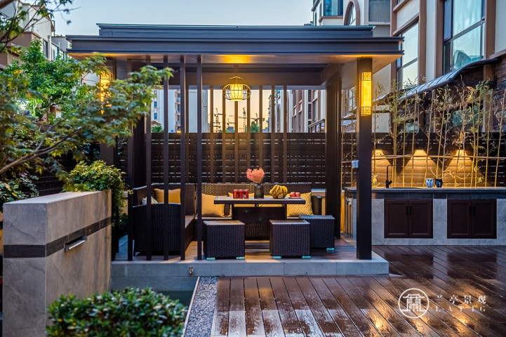 青島水岸新都別墅庭院設計|屋頂花園設計