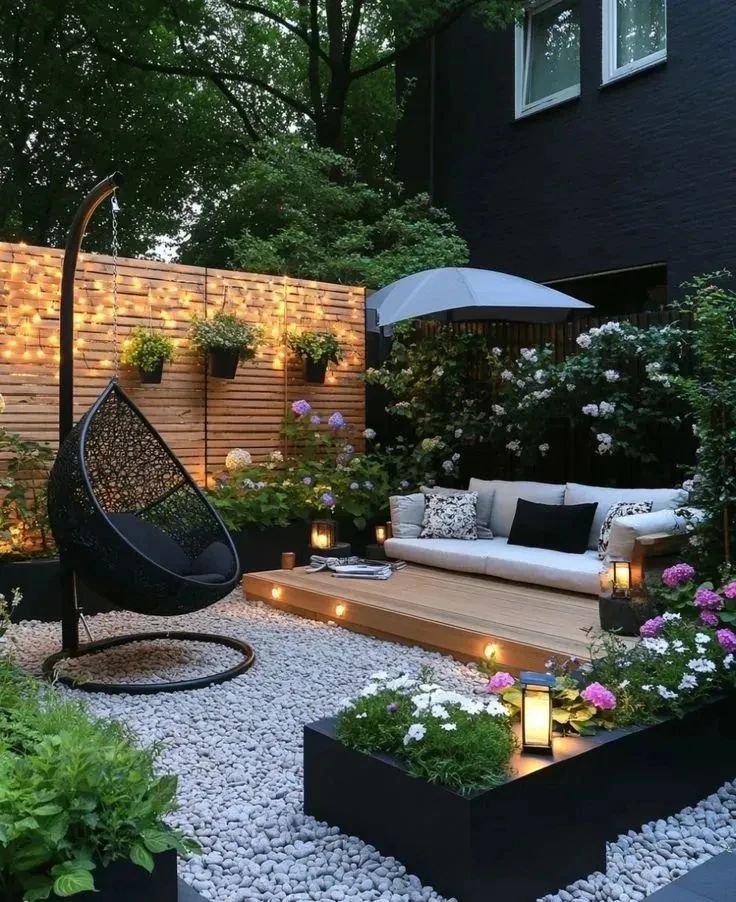 氛圍營造是庭院休閑區設計的靈魂,通過裝飾元素、色彩搭配和家具布局,可以營造出一個既溫馨又放松的氛圍。通過精心的布置和創意的設計,你的花園休閑區可以變成一個讓你放松身心、享受生活的完美場所。日照庭院設計