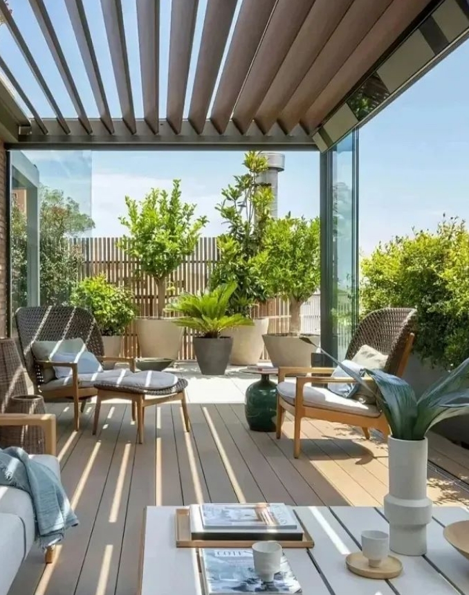 通過(guò)大面積的玻璃窗將室內(nèi)與室外的自然景觀緊密結(jié)合,冬季考慮氣溫低不適合戶(hù)外活動(dòng)時(shí),可以在花園里規(guī)劃一個(gè)陽(yáng)光房,既可以享受溫暖的陽(yáng)光同時(shí)也可以欣賞冬季花園的美感,增加戶(hù)外活動(dòng)的空間。青島別墅庭院設(shè)計(jì)