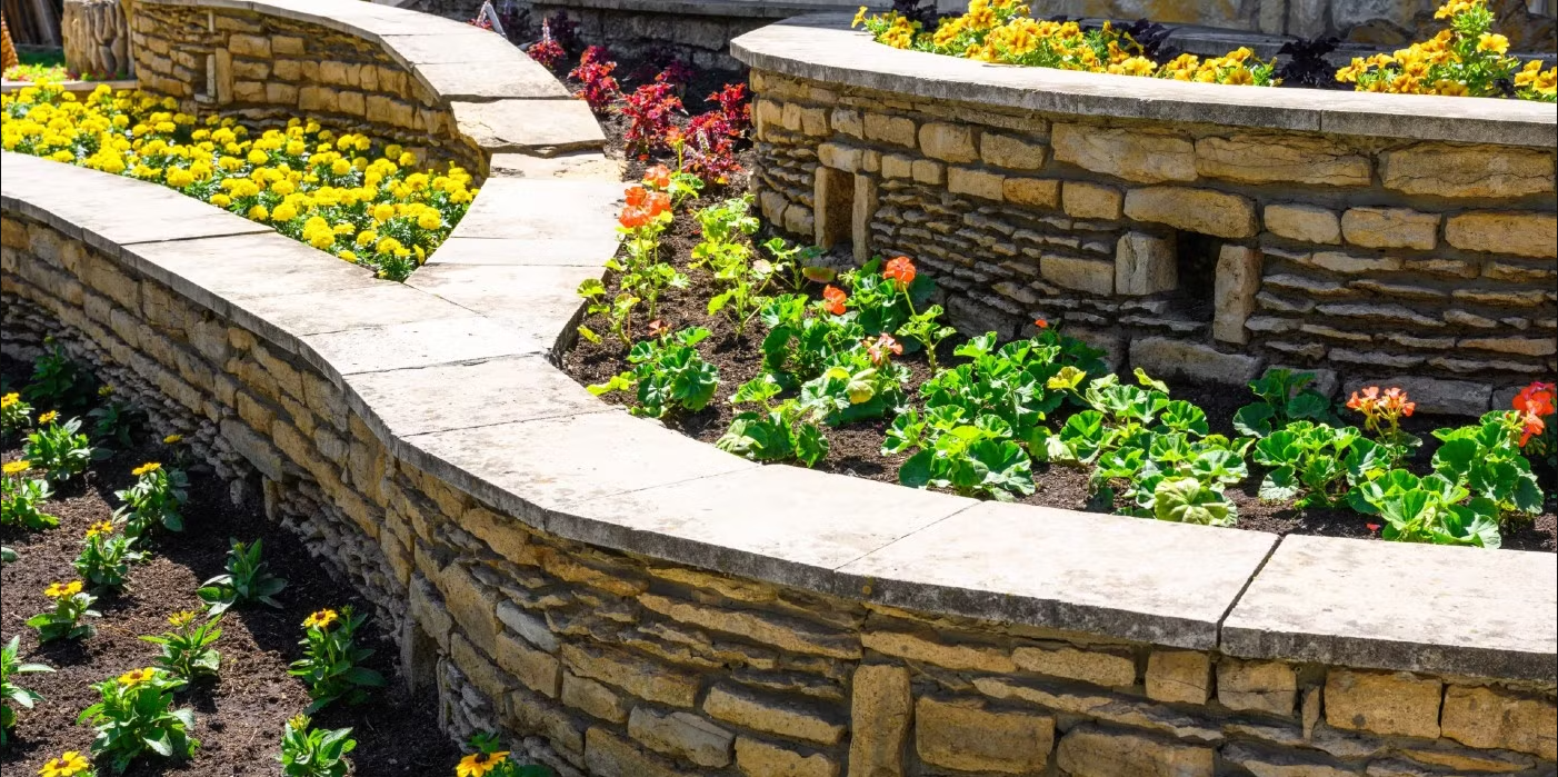 在高低起伏的地形中,石墻或石砌邊界能有效支撐土壤,防止水土流失,同時形成獨特的層次感。