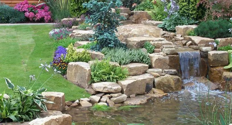 噴泉、溪流、池塘等水景元素常常依賴石材來塑造自然邊界,同時減少水土流失,使水景更加穩定。