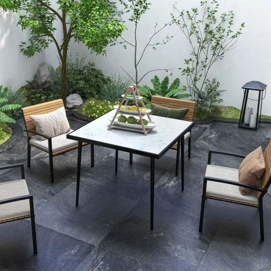 現代極簡風的庭院里,則會使用大面積的光面石材(如黑色花崗巖)塑造高級與簡約感。