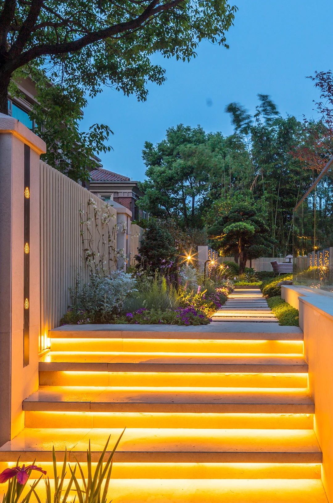 下晚的時候,打開燈光,整個花園的氣氛都會被烘托出來,每個地方,都設計了不同的光線,照射出一個溫暖浪漫的環境。不要小看這些星星點點的小光源,這才是設計師的用心之處。