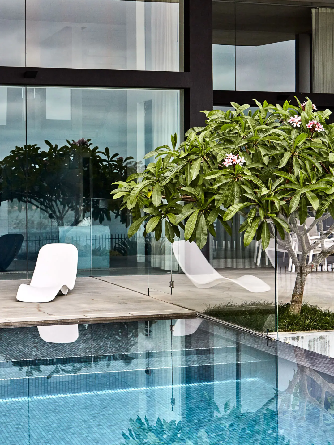玻璃的高透視覺能和現代風格的花園融洽一體,輕松地營造了現代氛圍;這種材質相較于其他材質也更容易清洗,且能受得起長時間的風吹日曬,維護成本較低