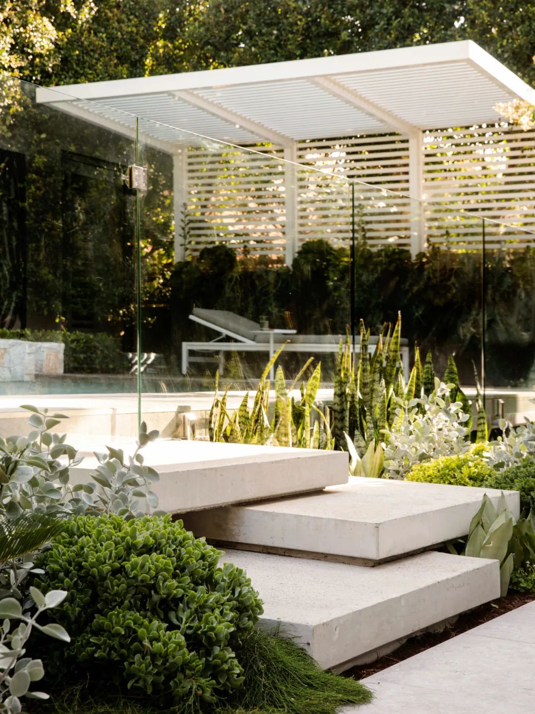 花園水景可細分為很多形式,泳池、生態池塘、靜水、跌水墻等不同表達形式。動水可以活躍空間氛圍,給人一種生機感,靜水則給人以寧靜、安心的體驗。青島別墅庭院設計