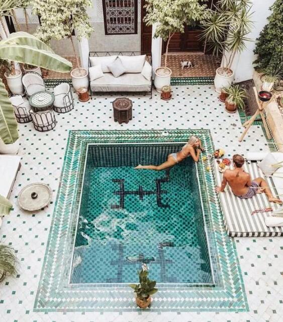 經常使用的元素有花籬、小徑、水池,還有隨處可見的木質椅子、石質地面,當然還有一套色彩清新、使用舒適的家具了,庭院家具對材質的運用非常講究,盡量使用原生材料,再運用通過傳統工藝加工而成的家具,這種選料和制作考究的家具自然而然會給人一種溫馨的親切感