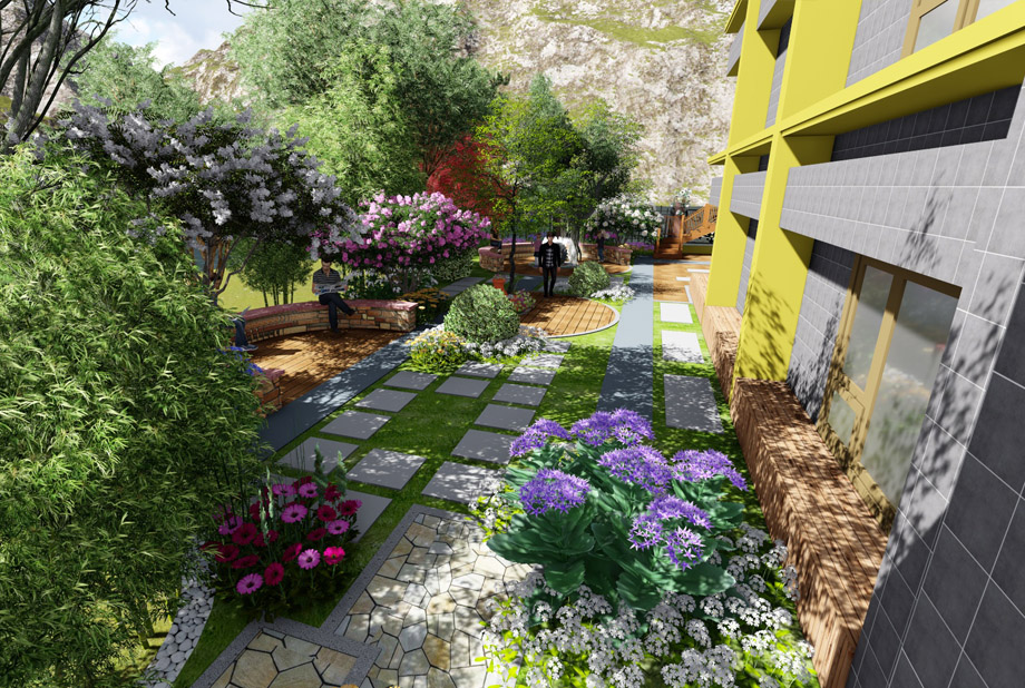 色彩的選擇以中性色為基調(diào),暖色調(diào)熱烈、興奮,冷色調(diào)優(yōu)雅、明快;明朗的色調(diào)使人輕松愉快,灰暗的色調(diào)則更為沉穩(wěn)寧?kù)o。色彩若是過(guò)于鮮艷,可能喧賓奪主而埋沒(méi)主景,甚至造成庭院景觀雜亂無(wú)序。